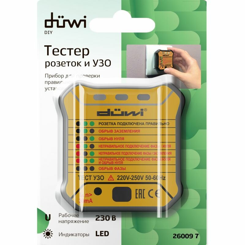 duwi Тестер розеток и УЗО M6860 Diy, 26009 7 .