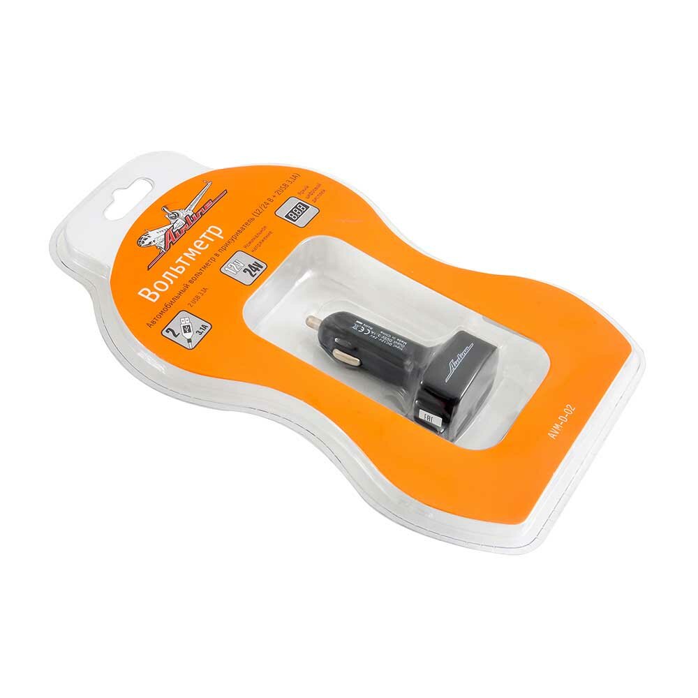 Вольтметр + 2USB 3,1A в прикуриватель 12-24В AVM-D-02 AIRLINE