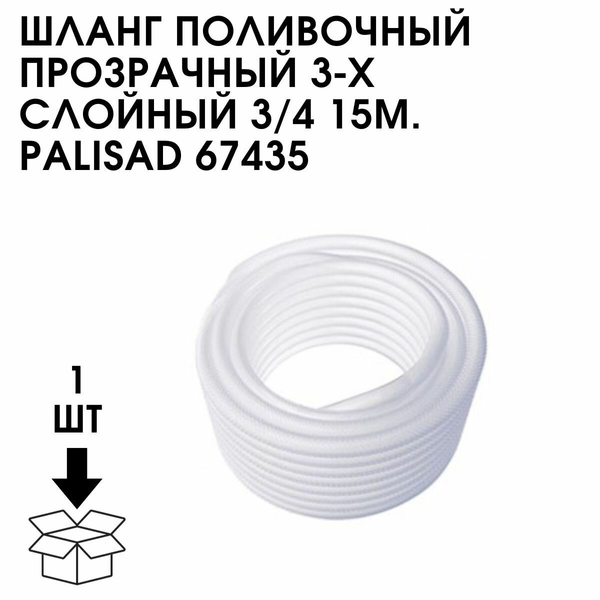 Шланг поливочный прозрачный армированный 3-х слойный, 3/4", 15 м// Palisad 67435 .