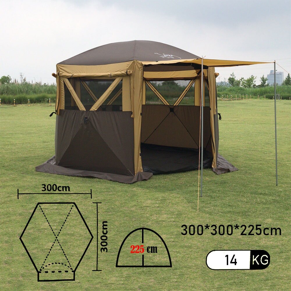 Шатер автоматический шестиугольный 300х300х225см, цвет хаки, 1 вход, дуги стекловолокно, 14 кг. MIMIR2905-S