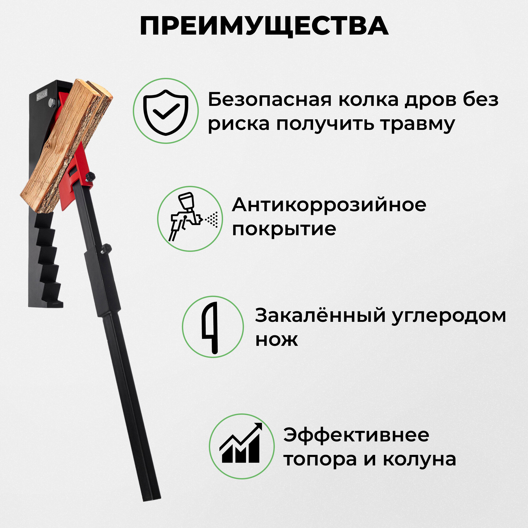 Дровокол-рычаг KOLUNDROV Бердыш, со съемным ножом, настенный ручной колун для дров, для дома, дачи и сада, красно-черный интересное: