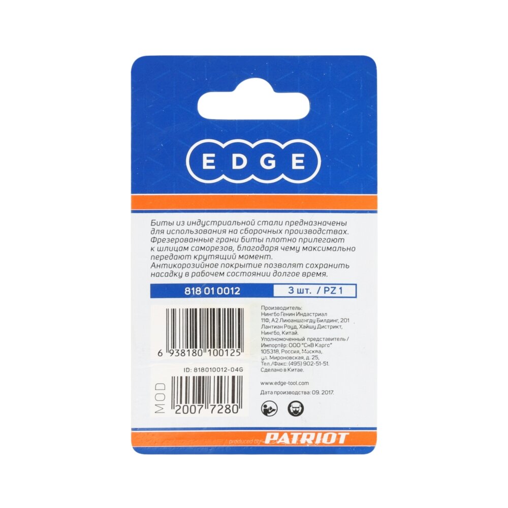 Бита EDGE by PATRIOT PZ1, сталь S2, длина 25 мм, 3шт в блистере интересное: