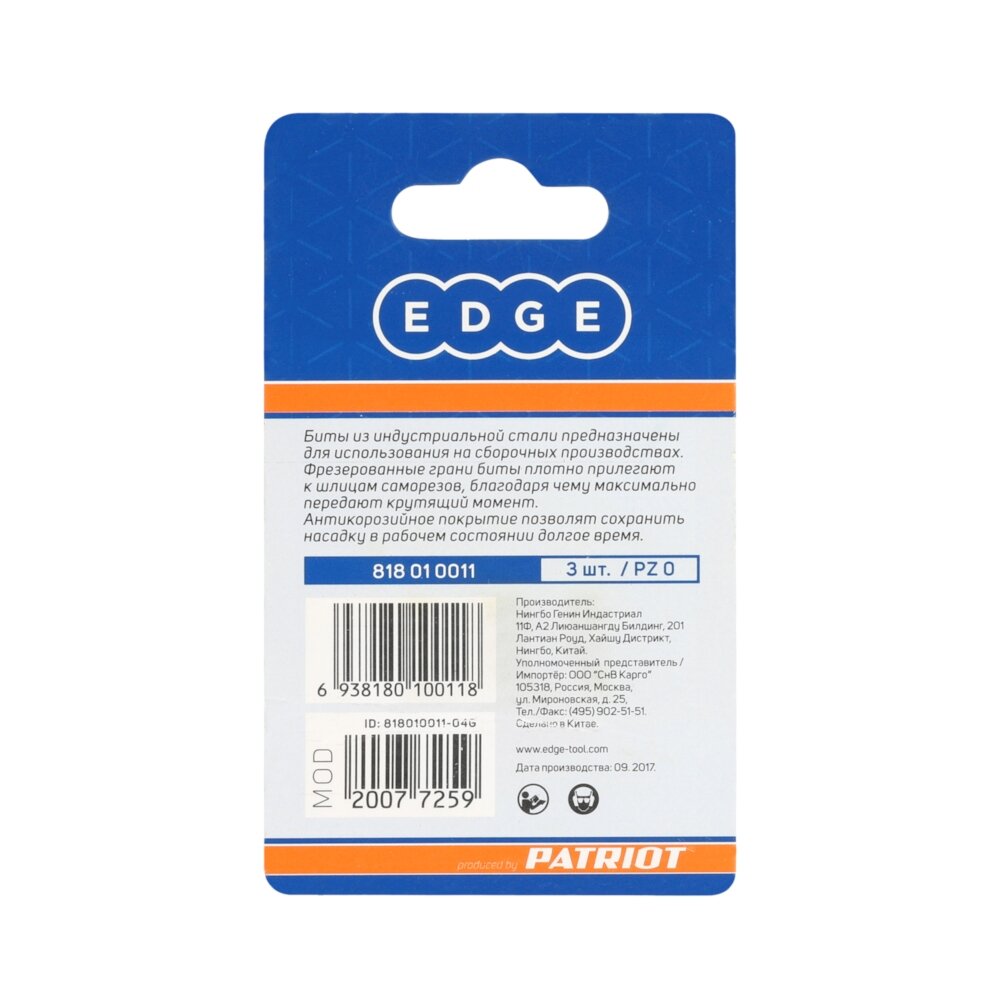 Бита EDGE by PATRIOT PZ0, сталь S2, длина 25 мм, 3шт в блистере интересное:
