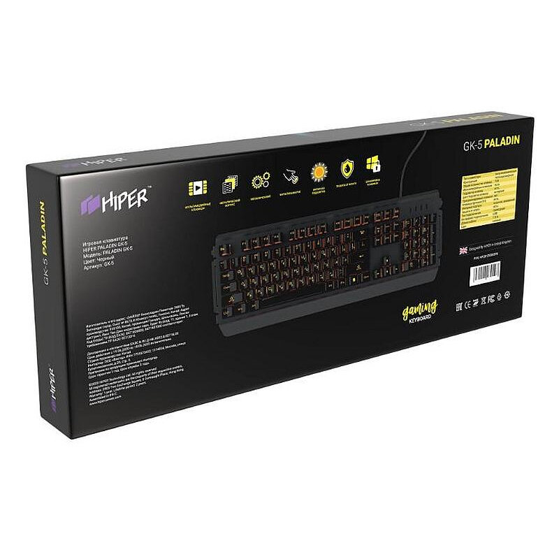 Игровая клавиатура Hiper GK-5 PALADIN чёрная (USB Xianghu Blue switches Янтарная подсветка Влагозащита)