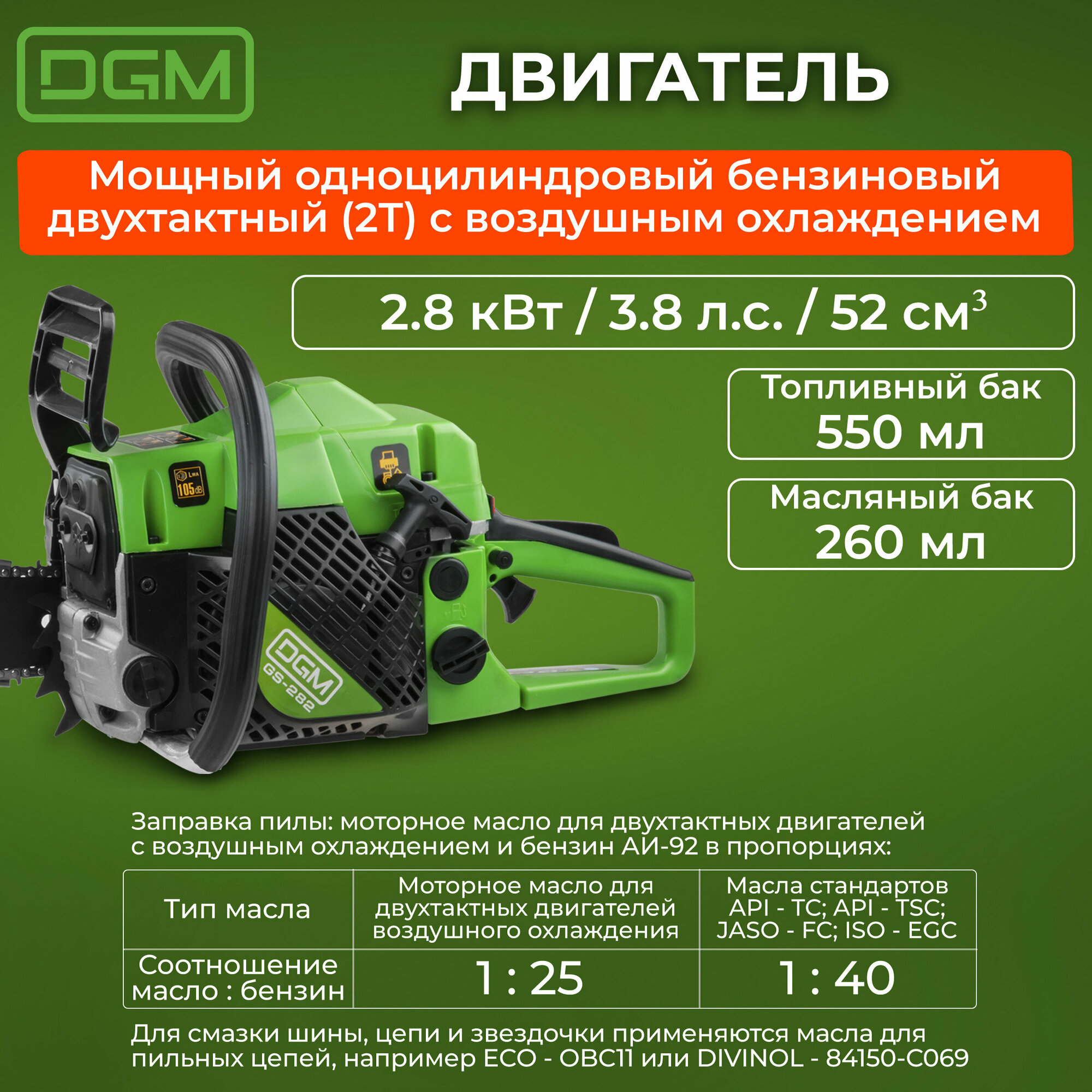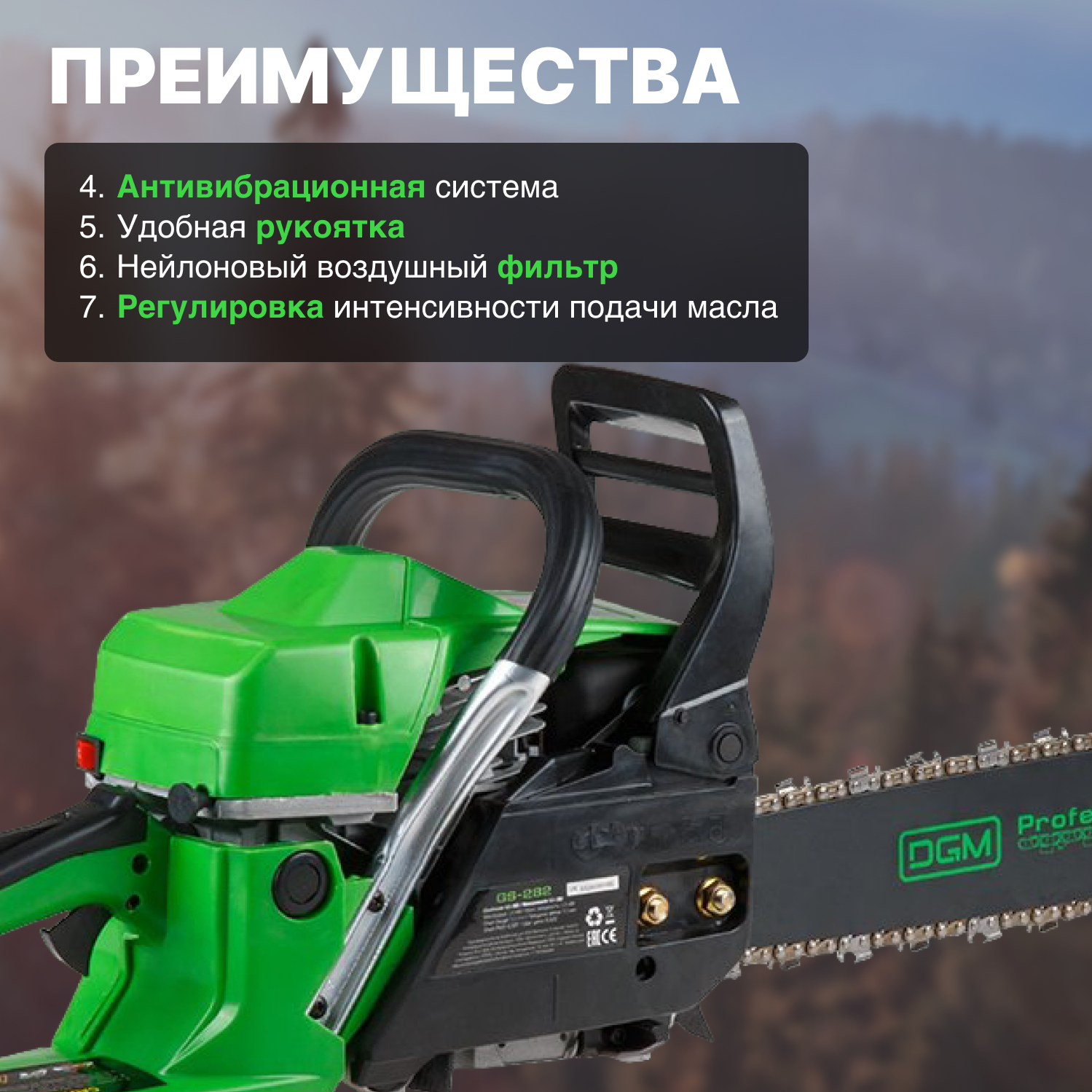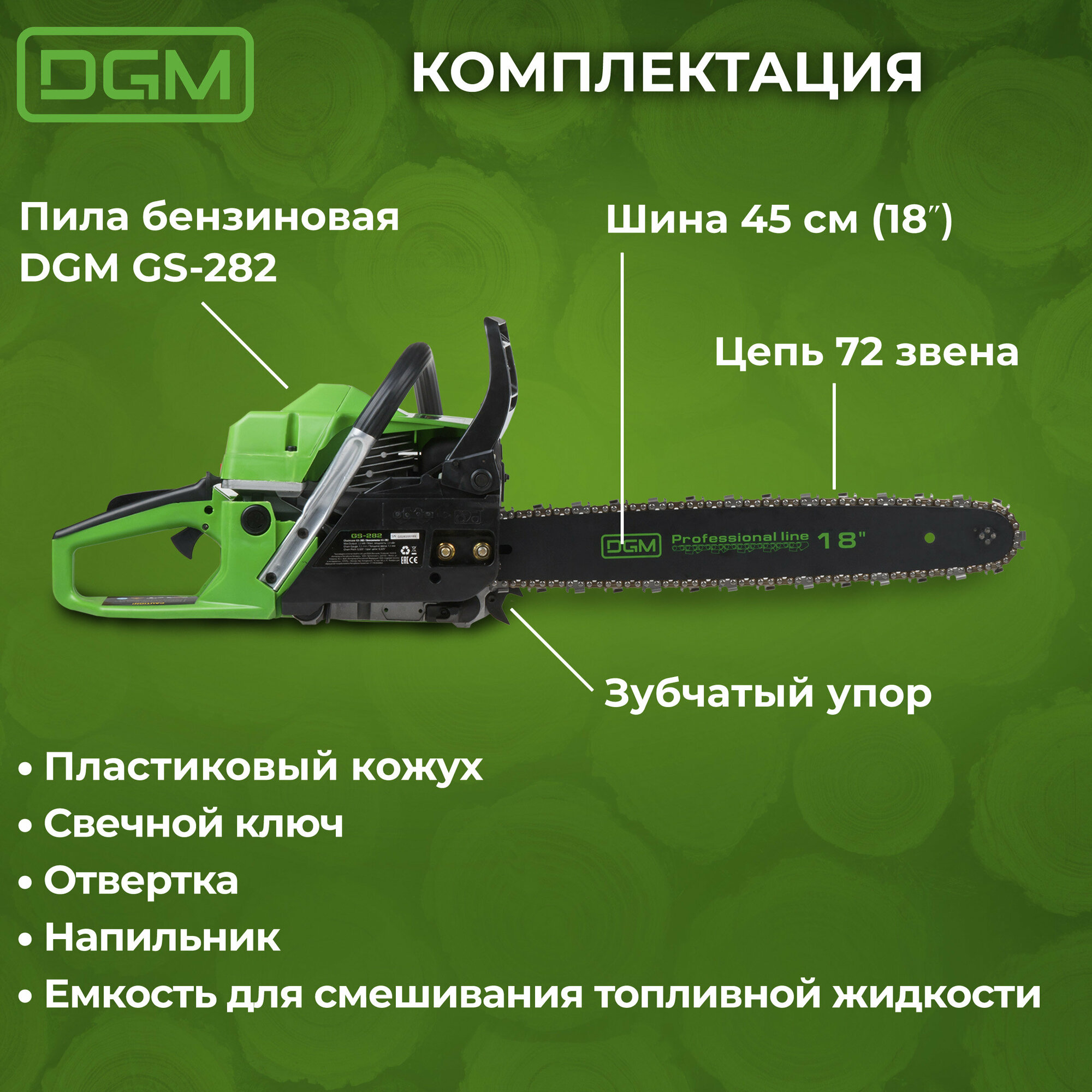 Бензопила DGM GS-282 (2.80 кВт, 45см, 18'', вес 6.5 кг) интересное: