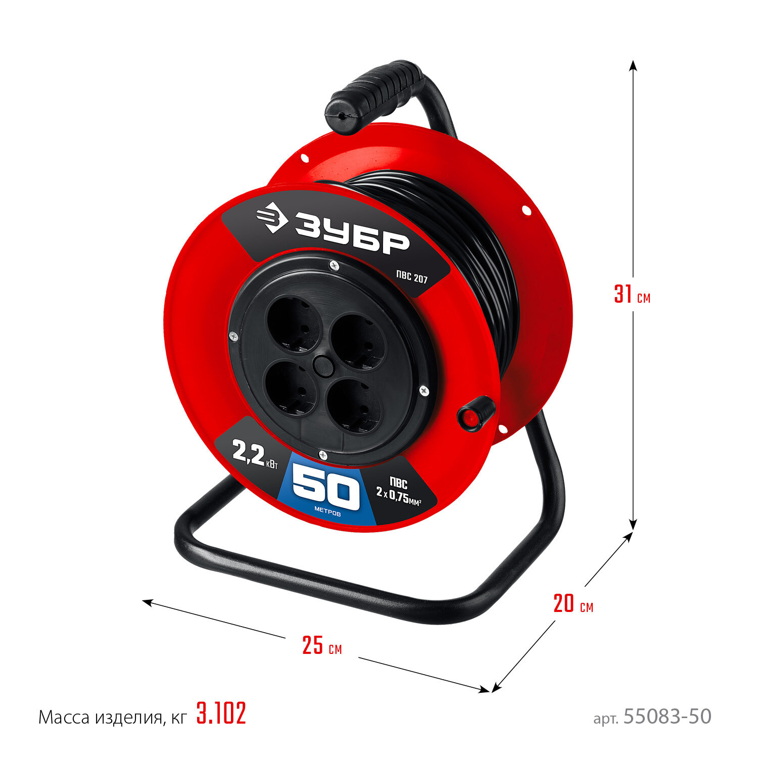 ЗУБР ПВС-207 ПВС 2х0.75 50м 2200Вт, Удлинитель на катушке (55083-50)