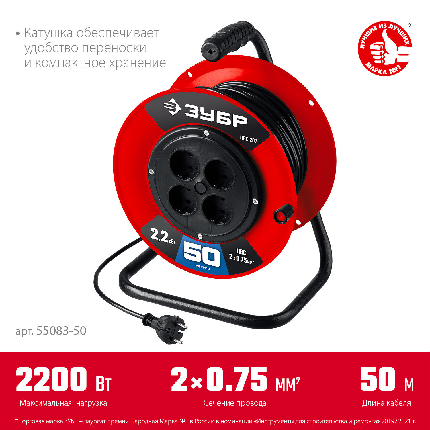 СохранитьУдлинитель на катушке, ЗУБР 55083-50 интересное: