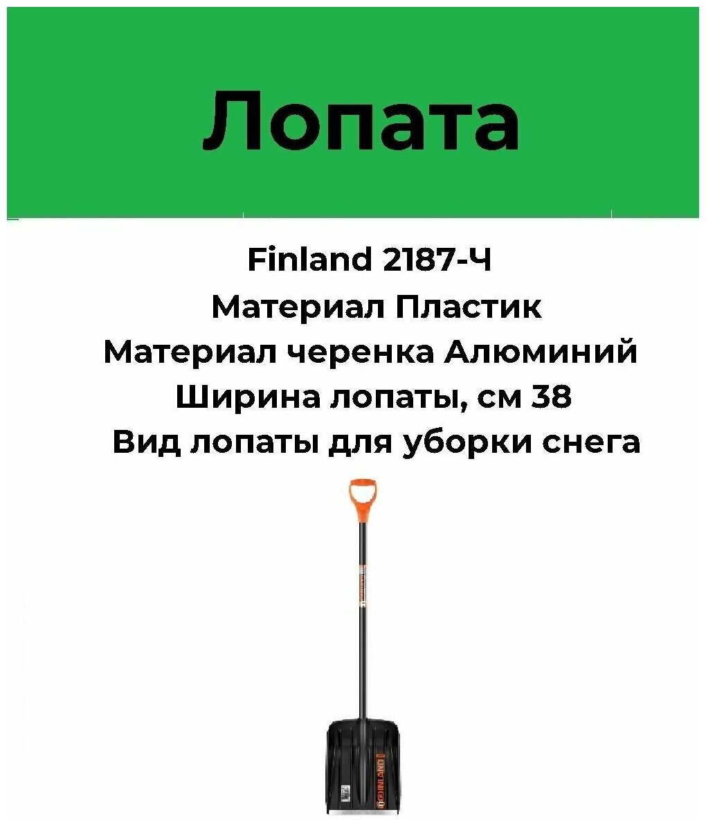 Лопата для уборки снега FINLAND 2187-Ч с мет. черенком 2187-Ч