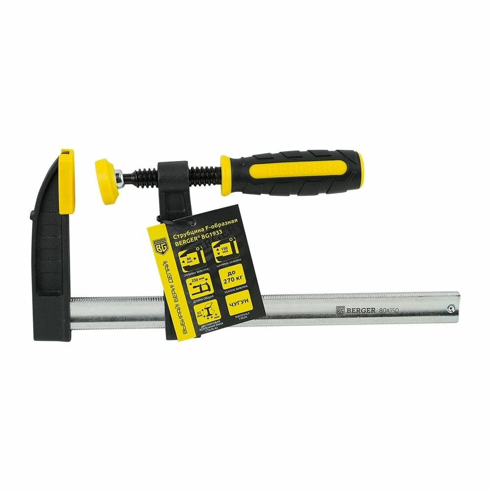 Ниже Вы можете прочитать отзывы на Струбцина F-образная 80*150мм BERGER BG1933, ознакомится с подробными характеристиками, посмотреть интересные обзоры и фотографии на Струбцина F-образная 80*150мм BERGER BG1933.