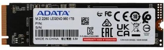 Накопитель Adata SSD M.2 LEGEND 960 1TB PCIe 4.0 x4 3D NAND (ALEG-960-1TCS) (ALEG-960-1TCS)
