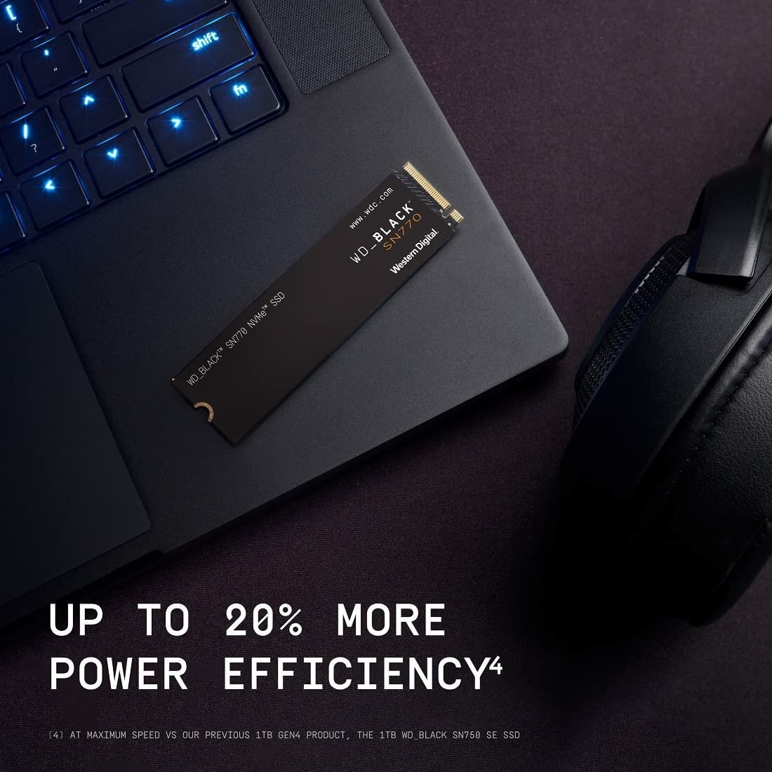 Внутренний твердотельный накопитель WD Black SN770 NVMe для игр, 1 ТБ — Gen4 PCIe, M.2 2280, до 5150 МБ/с — WDS100T3X0E