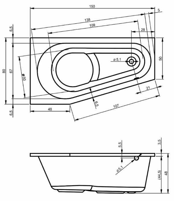 Ванна акриловая RIHO DELTA B066001005 R правая 150x80 см белая