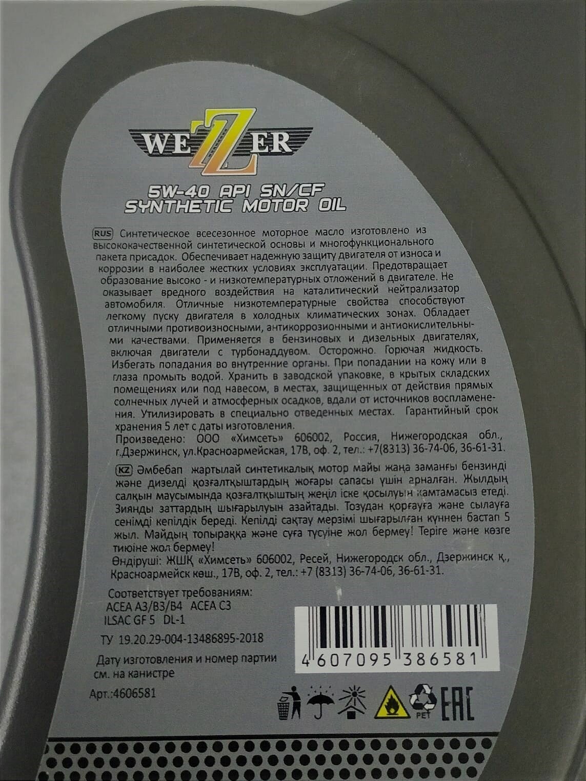 Масло моторное 5W40 WEZZER PLATINUM (1 л) интересное: