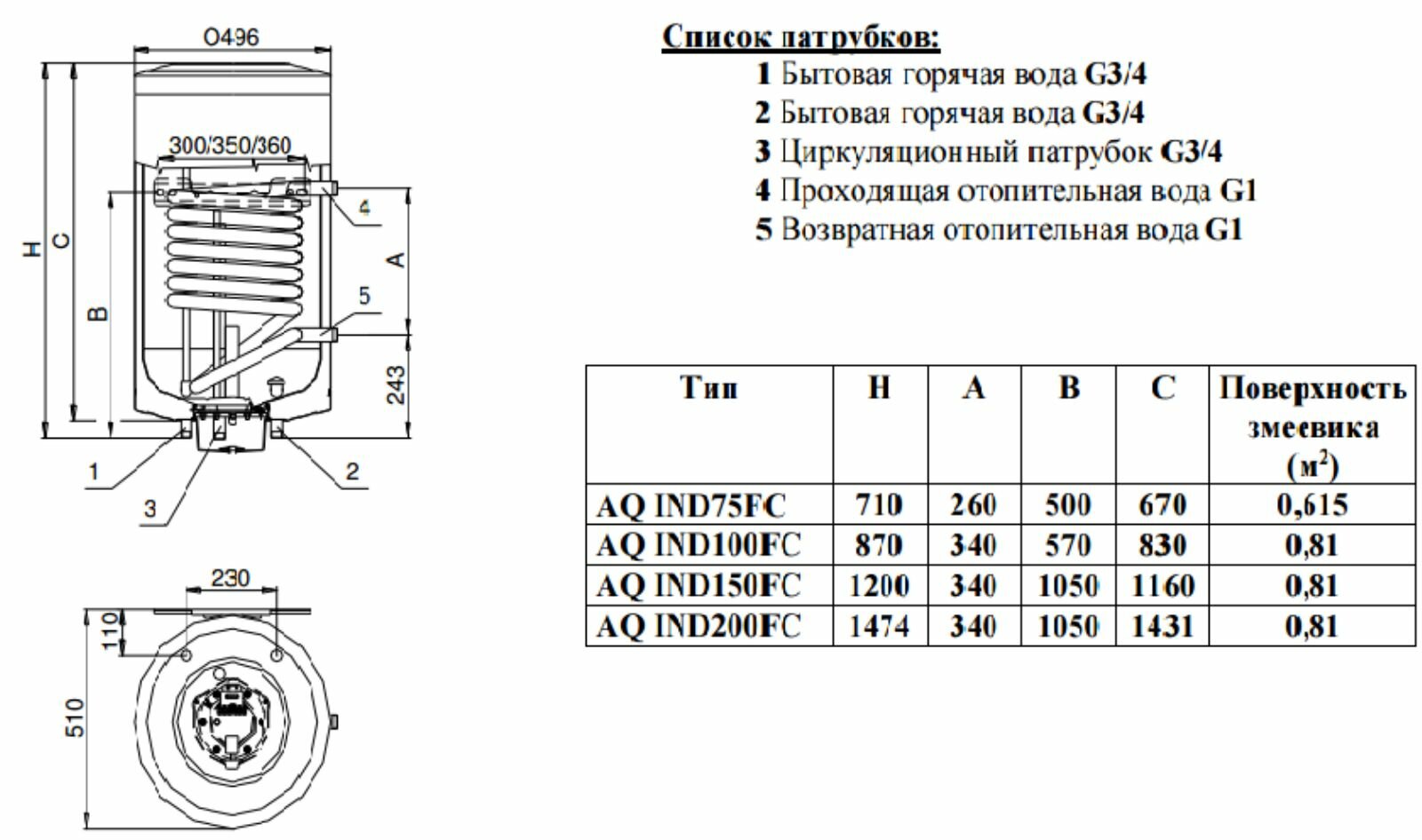 | Метод нагрева накопительного водонагревателя | косвенный |