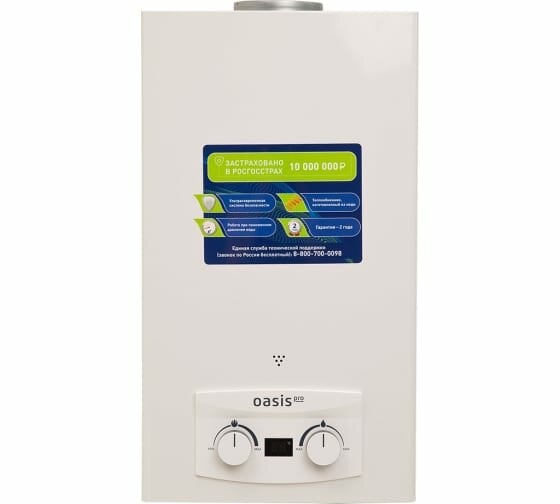 Колонка Оазис Pro WM 10 /бел., медн. теплообменник, работа при пониж. давлении воды, диспл., гар.2г