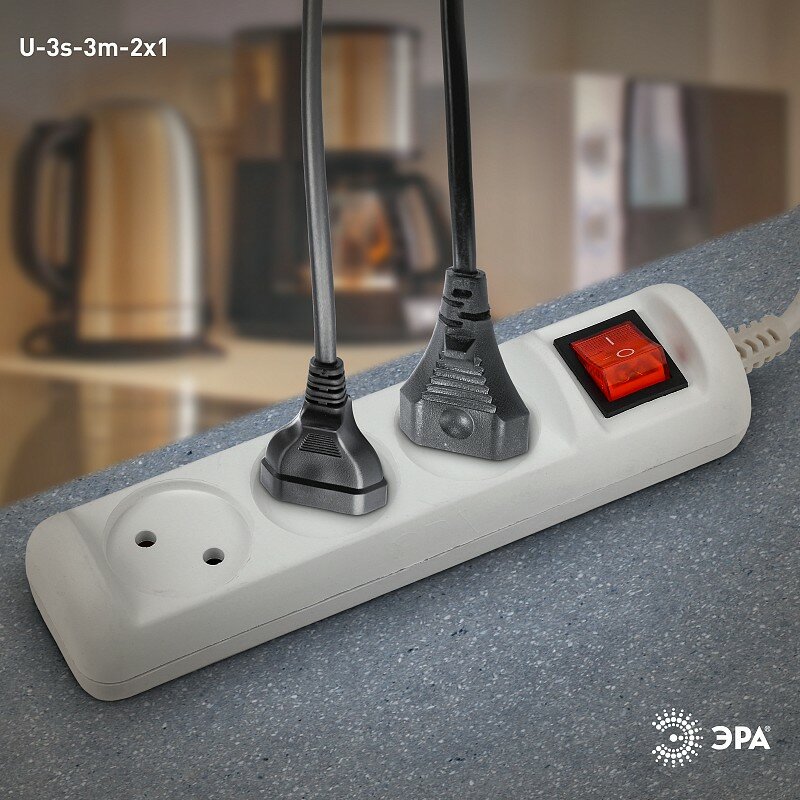 Удлинитель 3х3м без заземл. 10А IP20 U-3s-3m-2х1 ПВС 2х1 с выкл. Эра ЭРА Б0044050 (1 шт.)