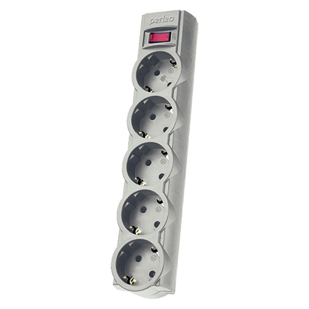 Сетевой фильтр с заземлением и кнопкой Perfeo POWERX, 1,8 м, 5 розеток (серый)