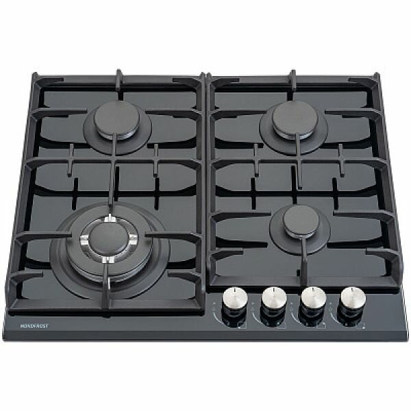 Газовая варочная поверхность NORDFROST HM 6042 B, электророзжиг, 4 конфорки, чугунные решетки, черное стекл