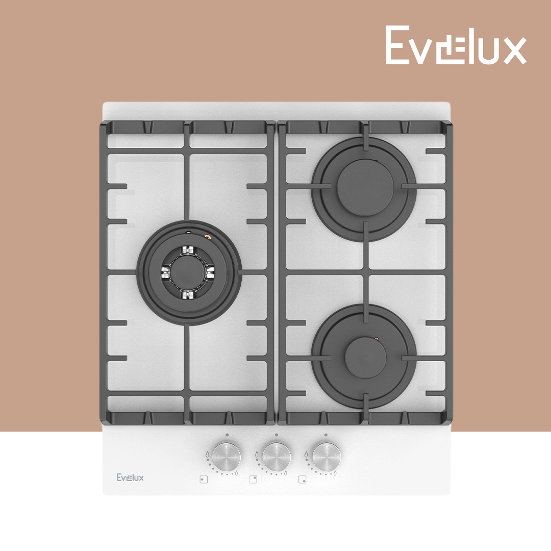 Варочная панель газовая Evelux HEG 450 WG, белый/черный