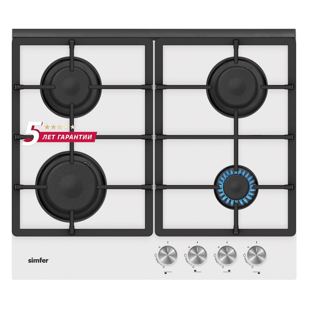 Газовая варочная панель Simfer H60H40W516, с газ-контролем, чугунные решетки, автоподжиг