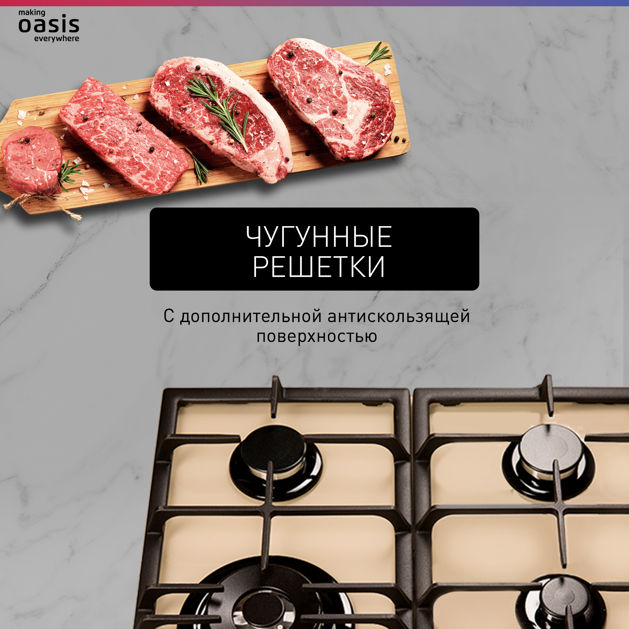 Варочная панель газовая making Oasis everywhere P-GRТ (F) беж. стекло.ретро турбо гор.
