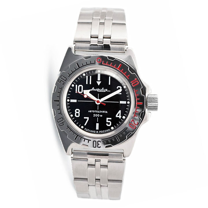 Наручные механические часы с автоподзаводом Восток Амфибия 110647 black red