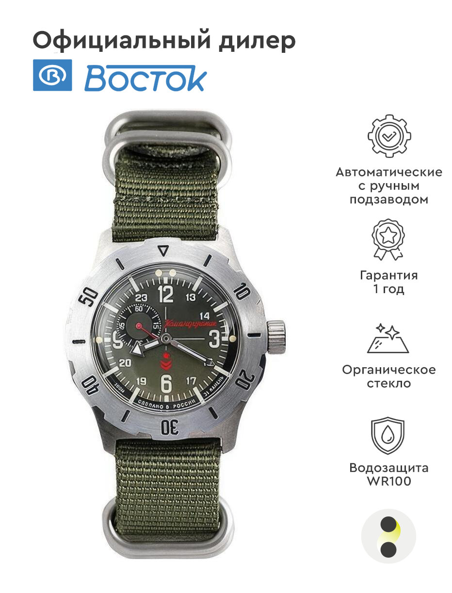 СохранитьМужские наручные часы Восток Командирские 350501, нейлон, хаки интересное: