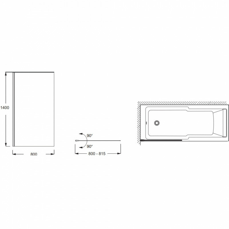 Шторка для ванны Jacob Delafon Struktura 80х140см, арт. E6D042-GA, прозрачная, поворотная