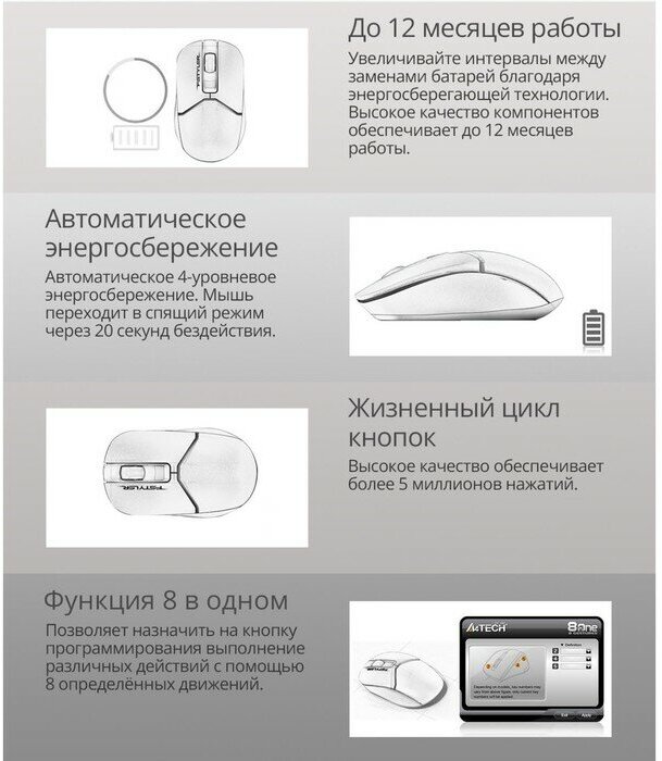 Мышь A4Tech Fstyler FB12, беспроводная, USB, белый (FB12 WHITE)