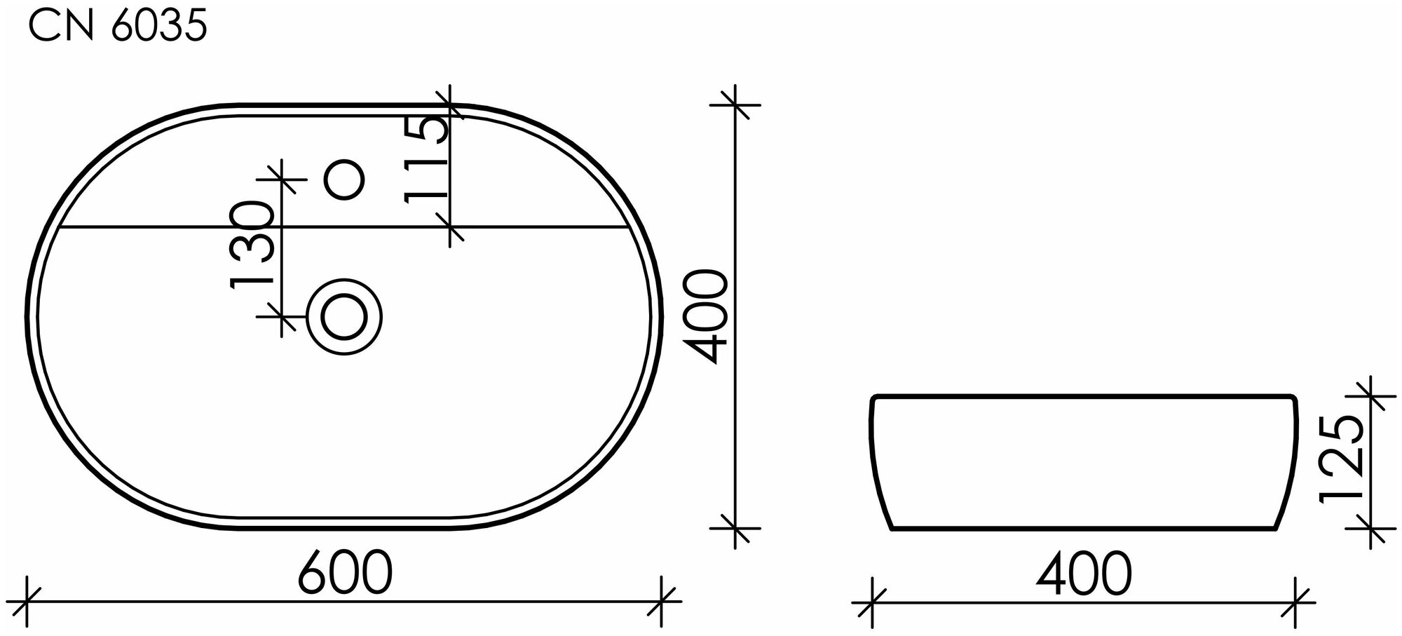 Накладная раковина Ceramicanova Element CN6035 Овал 60 см
