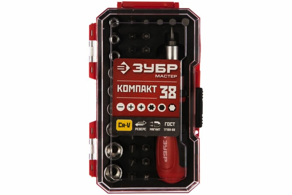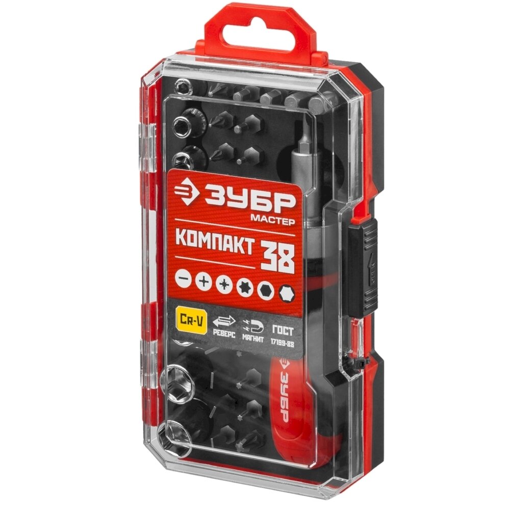 ЗУБР Компакт-38 набор: реверсивная отвертка с насадками 38 шт