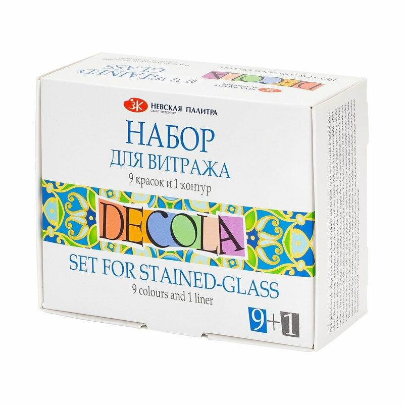 Краски витражные ЗХК Decola 9 цветов, с контуром, 20 мл, картон