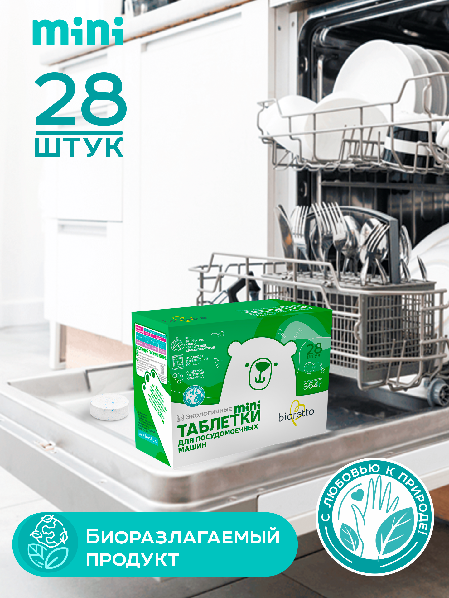 СохранитьТаблетки для посудомоечной машины bioretto mini, 28 штук, 364 г интересное: