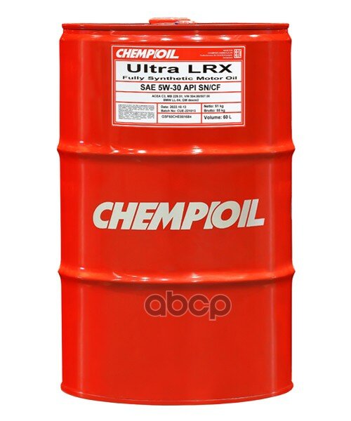 Сохранить5W-30 Ultra LRX SN/CF, C3, 60л (синт. мотор. масло) CHEMPIOIL CH970260E | цена за 1 шт интересное: