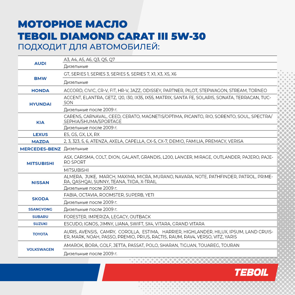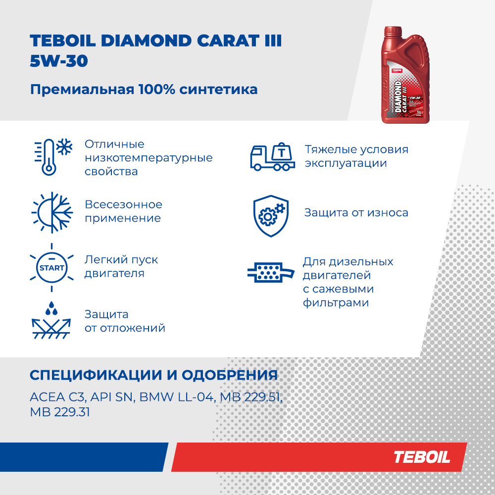Масло Моторное Синтетическое Diamond Carat Iii 5w30 Acea A3/B4/C3 1л Teboil арт. 030752