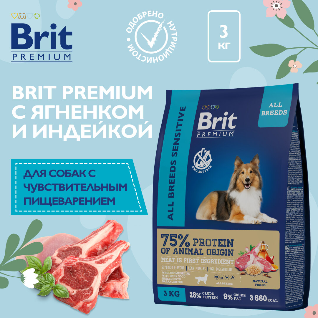 Brit Premium Dog Sensitive 3 кг сухой корм с ягнёнком и индейкой для взрослых собак всех пород с чувствительным пищеварением