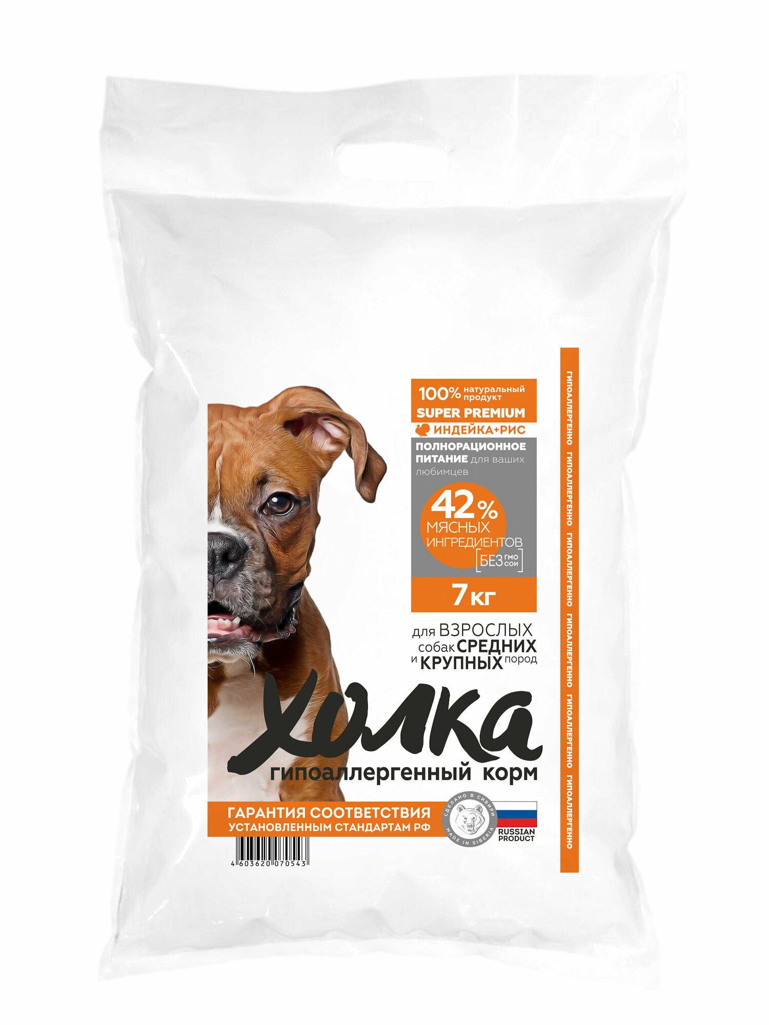 Холка гипоаллергенный сухой корм для взрослых собак средних и крупных пород с индейкой и рисом - 7 кг