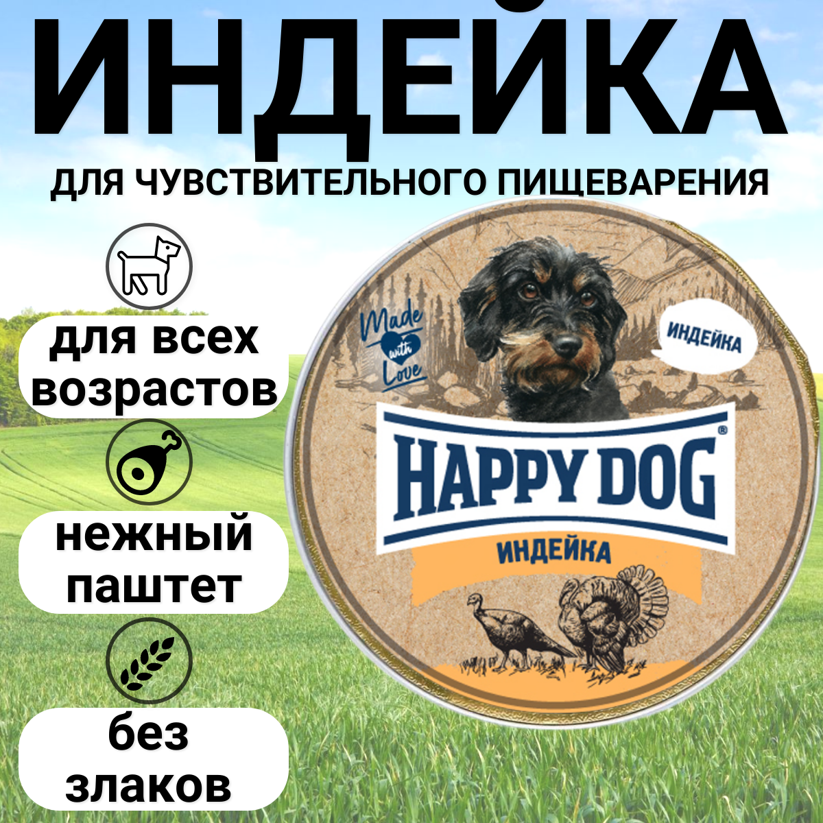 Купить Happy Dog Паштет для собак с Индейкой, 125г 0.125 кг