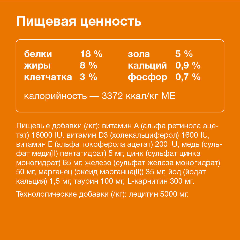 | Возраст животного | взрослые (1-6 лет) |