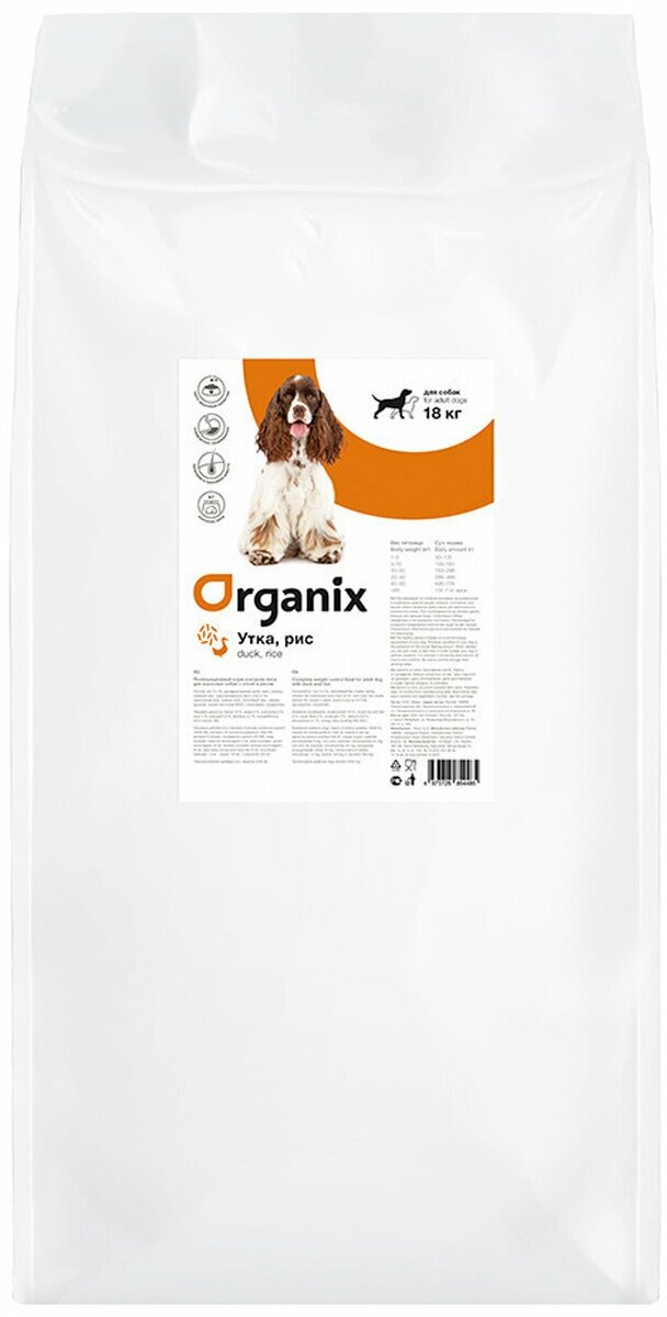 Купить Сухой корм Organix контроль веса для взрослых собак, с уткой и рисом, 18 кг