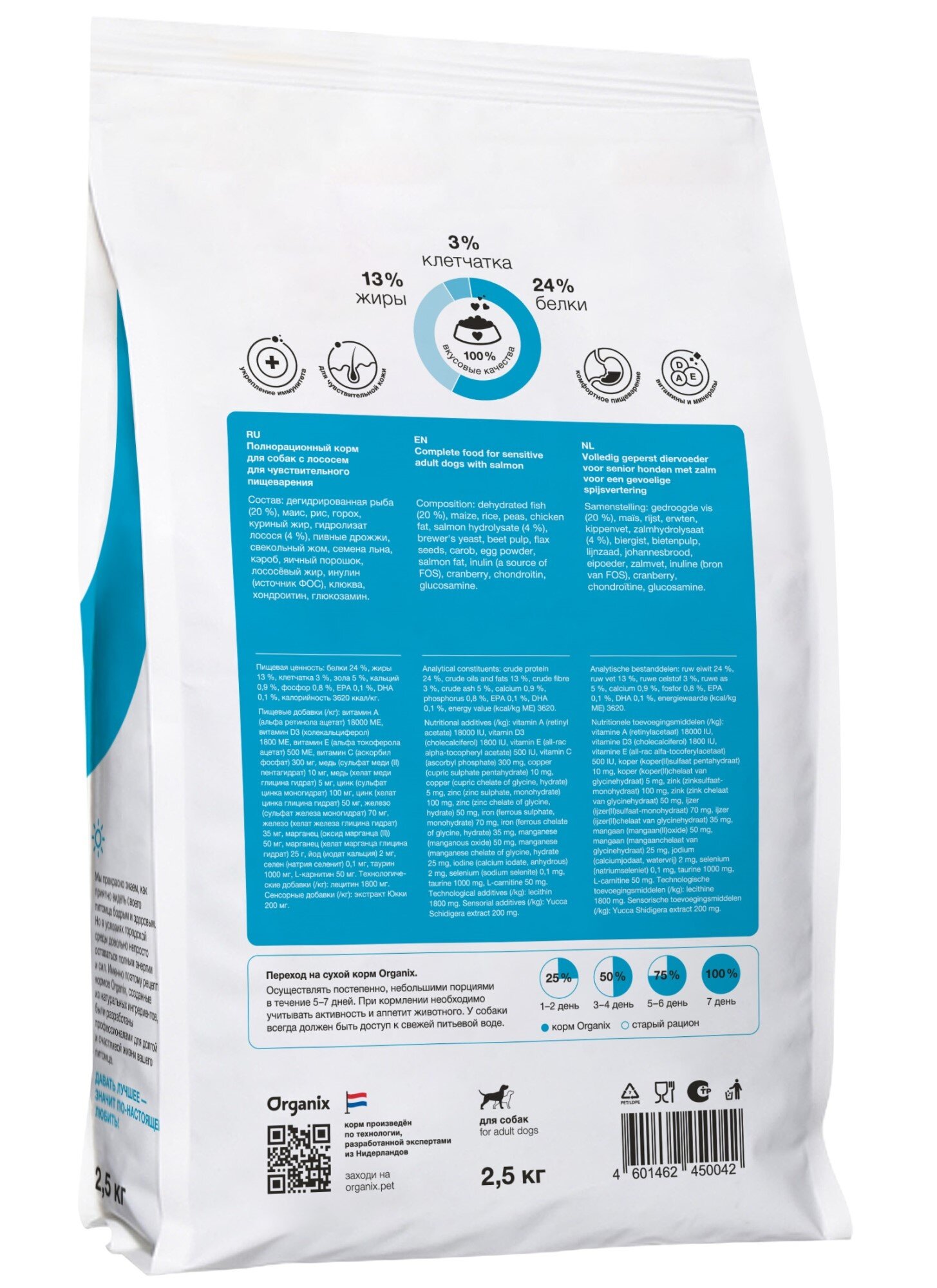 Сухой корм для собак ORGANIX при чувствительном пищеварении, лосось 1 уп. х 1 шт. х 2.5 кг