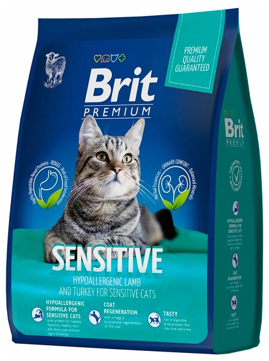 Brit Premium Cat Sensitive 8кг ягненок и индейка сухой корм при чувствительном пищеварении для кошек