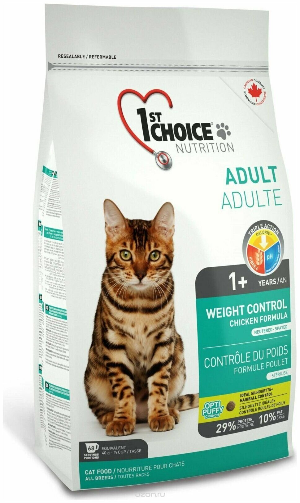 Сухой корм для кошек 1st CHOICE Weight Control с курицей, контроль веса 2,72 кг