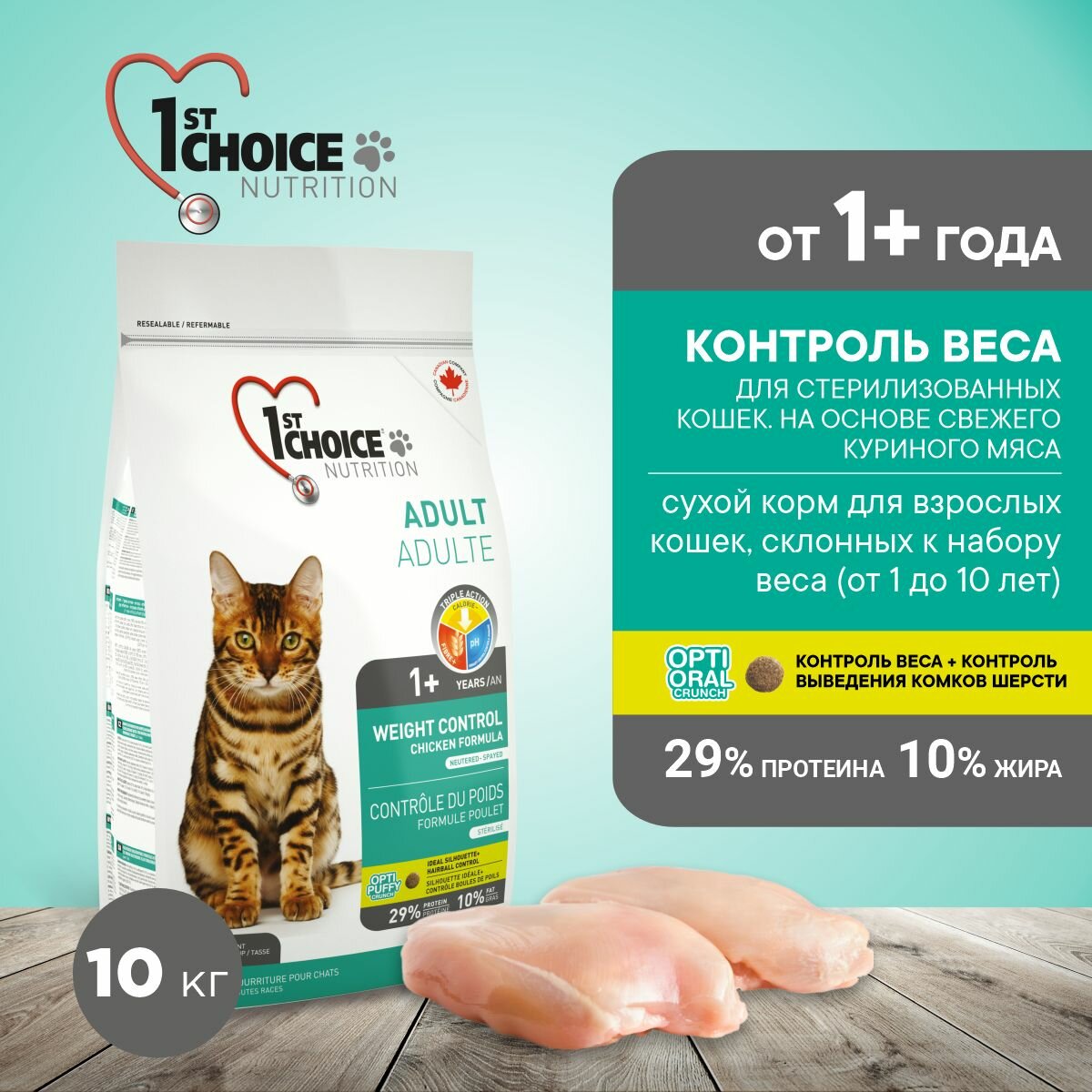 Сухой корм 1st CHOICE Weight control для стерилизованных кошек, с курицей, 10кг