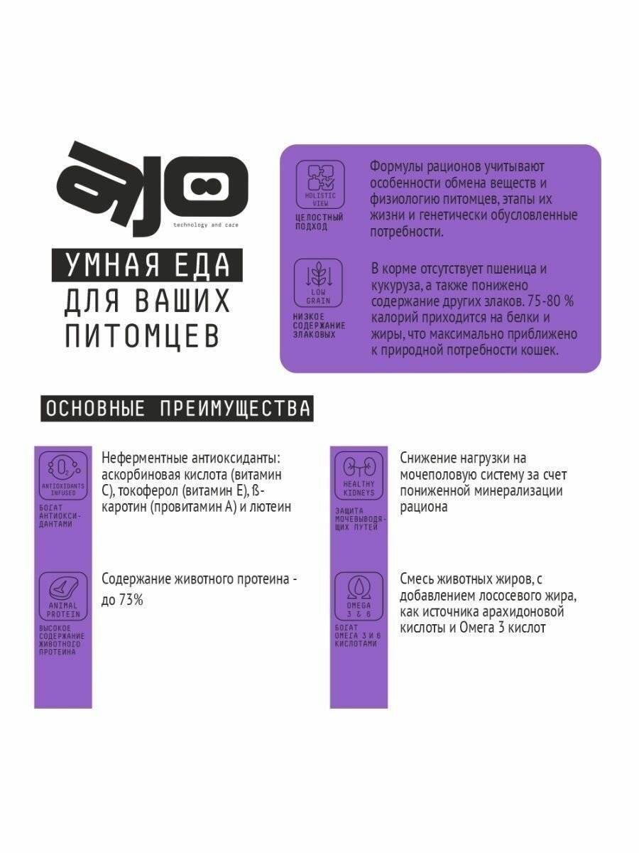 AJO Sensitive сухой полнорационный низкозерновой корм для кошек с чувствительным пищеварением 1,5 кг