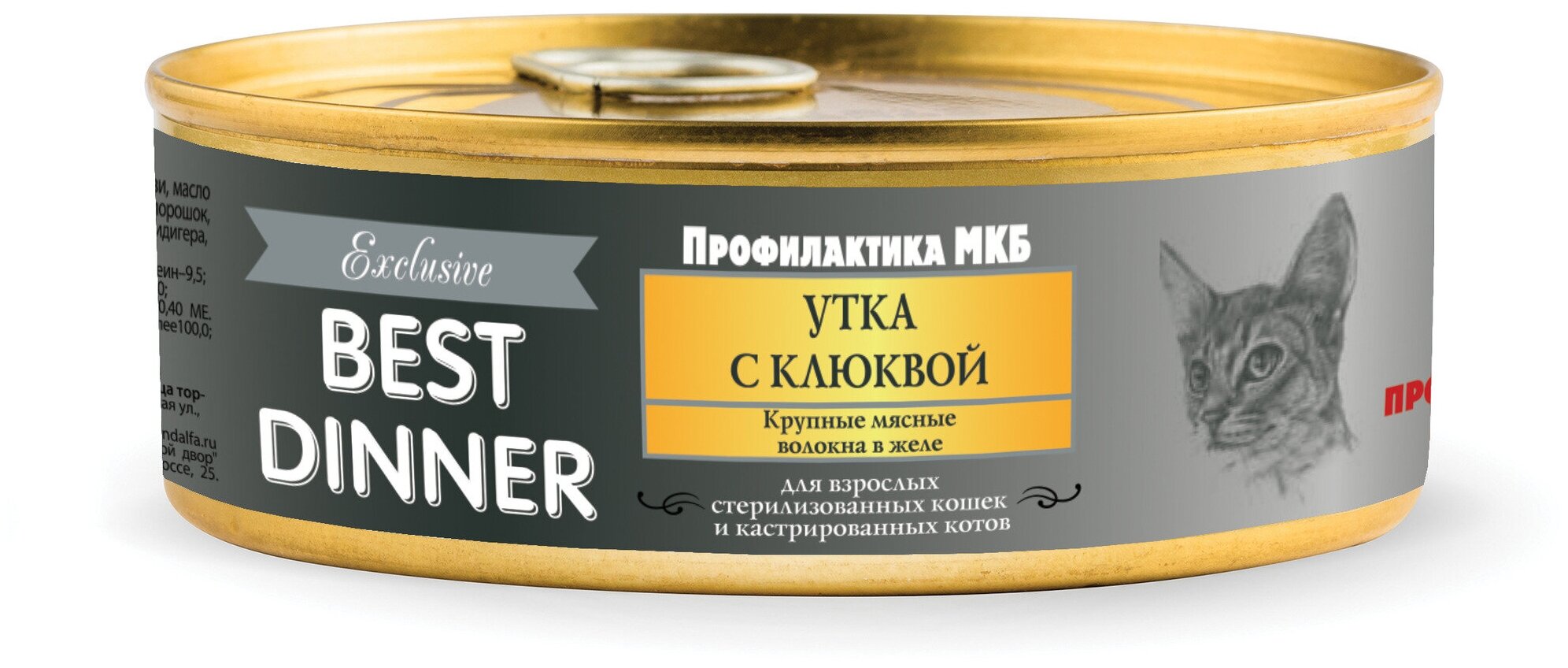 Best Dinner Exclusive консервы для кошек для профилактики МКБ с уткой и клюквой - 100 г х 24 шт