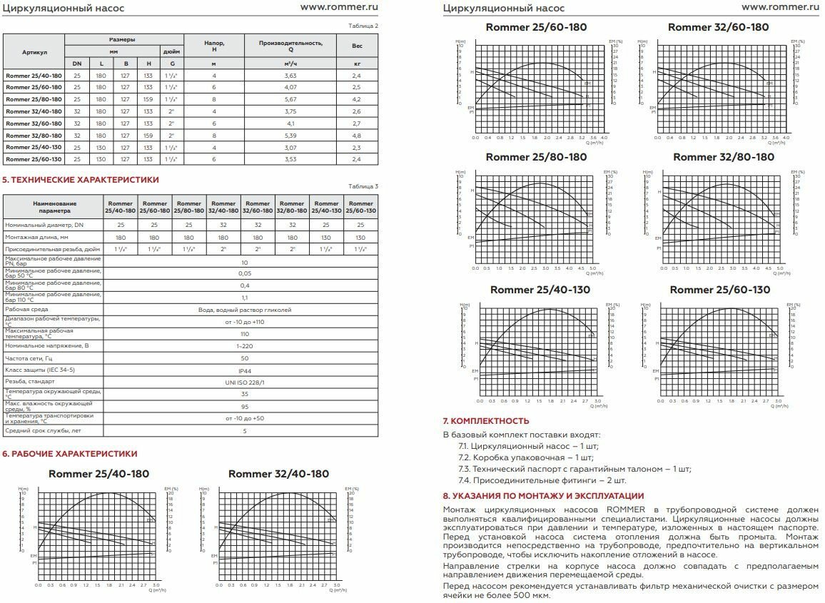 ROMMER циркуляционный насос 25/60-180 RCP-0002-2561801 RG0090BRV86TGQ