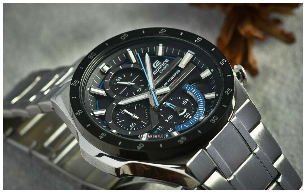 Японские кварцевые часы с солнечной подзарядкой Casio Edifice EQS-920DB-1B на стальном браслете, с водозащитой 10 бар и международной гарантией от производителя