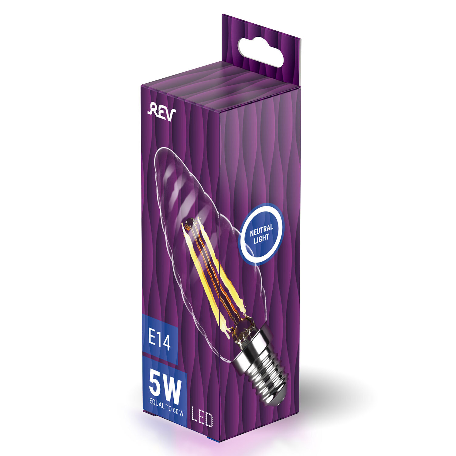 Лампочка светодиодная FILAMENT свеча витая TC37 E14 5W 4000K DECO Premium холодный свет REV интересное: