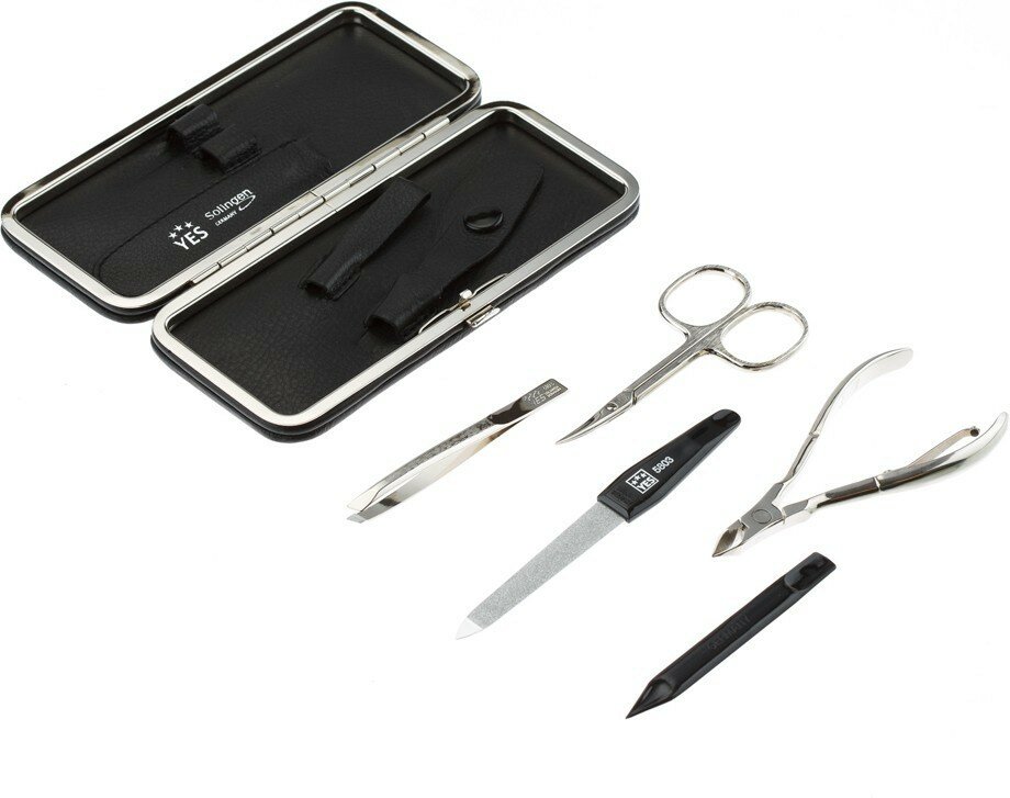 Yes 9021 Маникюрный набор yes, 5 пр. футляр: натуральная кожа, цвет черный